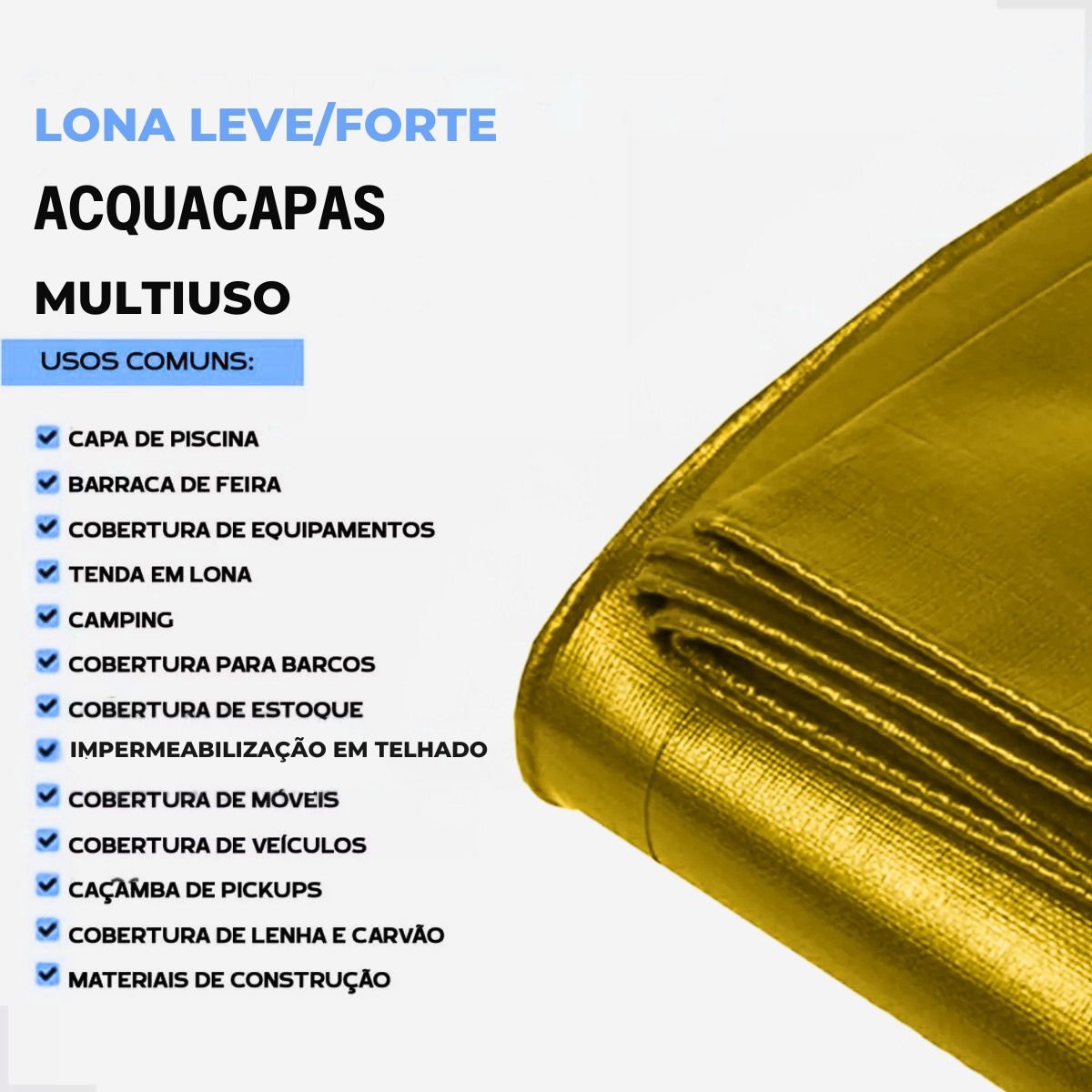É indicada para usos gerais e coberturas temporárias, protegendo contra chuva, poeira e sujeira.